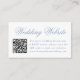 Med det här eleganten kan du enkelt visa dina gäster hur du använder det mjuka bröllop-webbplatshöljet. På framsidan visas "Bröllop webbplats" i skarp blå kalligrafi i vit bakgrund, med utrymme för att lägga till en skannerbar QR-kod som är länkad till bröllop webbplats och instruktioner för anpassningsbar. Baksidan har en ljusblå bakgrund med en vit vapensköld som anger parets monogram, tillsammans med datum för namn och bröllop i matchande vit blommigt. Ett vackert och förfinat val för klassiska, kustnära eller romantiska bröllop teman.