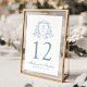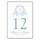 Elegant Blue Blommigt Vapensköld Monogram Bröllop Bordsnummer