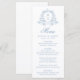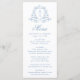 Elegant Blue Blommigt Vapensköld Monogram Bröllop Meny