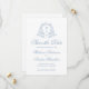 Elegant Blue Blommigt Vapensköld Monogram Bröllop Spara Datumet