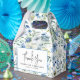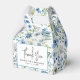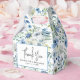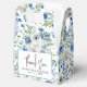 Ofruktbara vita blommor och grönt vattenfärgsfärgade löv bildar ett vackert gräns på dessa söt personlig blå blommigt vår bröllop-favoritboxar. Chic, vackra trädgårdsbröllopslåda för dina gäster.