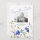 Ange tonen för speciella dag med den här bedövande Spara datuminbjudan. Framsidan har ett anpassade för fotot som är parat med namn i ett teckensnitt för elegant och skapar en personlig och tidlös design. På baksidan hittar du din händelseinformation vid sidan av en känslig vattenfärgillustration av boho-inspirerade blå blommor, vilket ger en känsla av naturskönhet och charm. Perfekt för rustik, boho eller trädgårdskrävande bröllop. Med det här Spara datumkortet blandas modern elegans med ett litet stycke stollig. Helt anpassade, det är designat att spegla ditt unika stil när du firar romantik i din kommande bröllopsdag.