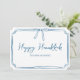 Fira Hanukkah med elegans och charm med det här anpassadet Hanukkah-hälsningskort. Det här kortet har en delikat blå vågigt gräns och en söt buggdetalj och ger dig en aning värme och sofistikering till önskemål i helgdag. Anpassa det till din familj namn för att göra det verkligt speciellt. Perfekt för att skicka hjärtliga budskap till nära och kära i säsongen! Perfekt för familjer som vill ha en modern men traditionell kontakt för sin Hanukkah hälsning.