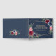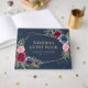 Personlig vattenfärgsblått och burgundblått gäst bok i blommigt med bröllop som har en geometrisk blommigt ram på en marin blå bakgrund. Matchande objekt som är tillgängliga för kompilering av den här eleganten, marinblått och burgundärt blommigt bröllop gäst bok. Kontakta oss via Zazzle-chattan om du vill ha anpassningsbar.