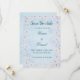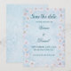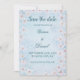 ditt bröllop-datum i stil med den här eleganten blå Spara datumkortet med blommigtar för mjuk körsbärsblommar och vattenfärgsstruktur. I designen kombineras en fräschande pastellblå ton med romantiska blommigtar - perfekt för vår, trädgård eller målbröllop. Anpassa till namn, datum och plats för att matcha ditt unika firande. Perfekt för par som vill ha ett ljus, modernt, men tidlöst utseende.
