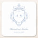 Elegant Blue Chinoiserie Bird Vapensköld Bröllop Underlägg Papper Kvadrat