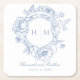 Elegant Blue Chinoiserie Bird Vapensköld Bröllop Underlägg Papper Kvadrat