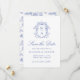 Meddela ditt kommande bröllop till vänner och familj med den här Eleganten Blåkineserie Victorian Blommigt-fotot spara datumet. Den här designen visningar din monogrammofon initialer omgiven av en vapensköld av intricate blue chinoiserie och baroque motifs. "Spara datumet" visas i ett blått kalligrafiskt skript med information om bröllop som visas nedan. Kortets baksida har förlovningen lodrät med en blå kinesisk-inspirerad bakgrund av blommönstret.