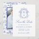 Elegant Blue Chinoiserie Blommigt Photo Bröllop Spara Datumet