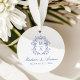 Elegant Blue Chinoiserie Vapensköld Monogram Bröll Gåvor Etiketter