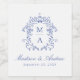 Elegant Blue Chinoiserie Vapensköld Monogram Bröll Vinflaska Etikett