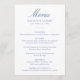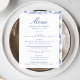 Öka din bröllopsmottagning med vår Elegant Blue Chinoiserie Blommigt bröllop-meny. Designad med grå blå kalligrafi på en vit bakgrund är den här menyn helt anpassade med namn, bröllop datum och menydetaljer. Den omvända sidan har ett strålande blått och vitt kinesiskt blommönster, som ger dig ett litet klassiskt elegans till din bord-décor. Ett perfekt sätt att komplettera din speciella dag med personlig stil och sofistikering.