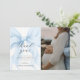 Elegant Blue Coquette Bow Girl Baby Shower Photo Tack Kort