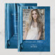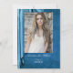 En blå elegant ger bakgrunden till detta studenten-meddelande. Fotot och all text ändras enkelt med hjälp av mallen. Om du vill göra andra ändringar (t.ex. typsnitt, färg, storlek eller placering) väljer du "Anpassa den här designen" och väljer "Redigera med design också". Det finns fler former och storlekar för kort. Se Alternativ. Om du vill att designen inslag ska passa in på en annan storlek kan du behöva använda Verktyg i Design. Kompletteras med kuvert.