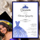This elegant blue and black quinceanera invitation has a dress, a blue tiara crown, and a black border with a personalizable template to create your own message. The invitation template is customizable in the listing editor and is also available as a digital download that's printable after you personalize it.