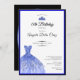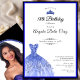 This elegant blue and black 18th birthday debut invitation has a dress, a blue tiara crown, and a black border with a personalizable template to create your own message. The invitation template is customizable in the listing editor and is also available as a digital download that's printable after you personalize it. The pretty and minimalist design is nice for a formal event to celebrate a milestone birthday.