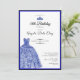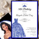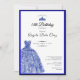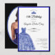 This elegant blue and black 18th birthday debut invitation has a dress, a blue tiara crown, and a black border with a personalizable template to create your own message. The invitation template is customizable in the listing editor and is also available as a digital download that's printable after you personalize it. The pretty and minimalist design is nice for a formal event to celebrate a milestone birthday.