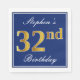 Den här enkla och elegant pappra napkin-designen innehåller ett meddelande som "Stephen's 32nd Birthday" (med "32nd" som har en ytliknande guld-färg) i ett fyrkantigt område med blå färgad med en enkel gräns-kontur. Namn är i skriptliknande text med vit färgad och kan anpassas. Napkins som dessa kan kanske användas i en födelsedagsfest till någon som firar sin trettioandra födelsedag. [~Z0000141]