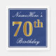 Den här enkla och elegant pappra napkin-designen innehåller ett meddelande som "Namehär's 70 Birthday" (med "70:e" som har en ytliknande guld-färg) i ett fyrkantigt område med blå färgad med en enkel gräns-kontur. Namn är i manusliknande text med vit färgad och kan vara personlig. Napkins som dessa kan kanske användas i en födelsedagsfest till någon som firar sin 70-årsdag. [~Z0000141]