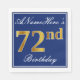 Den här enkla och elegant pappra napkin-designen innehåller ett meddelande som "ANamehär's 72:a födelsedagen" (med "72:a" som har en ytliknande guld-färg) i ett fyrkantigt område med blå färgad med en enkel gräns-kontur. Namn är i skriptliknande text med vit färgad och kan anpassas. Napkins som dessa kan kanske användas i en födelsedagsfest till någon som firar sin sjuttioandra födelsedag. [~Z0000141]