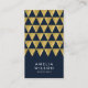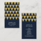 Det här moderna affärskortet och det här elegant lodrät har en geometrisk design av faux guld trianglar mot en blå bakgrund. Det är idealiskt för olika yrken som konsulter, Hair- och Makeup-Stylist, judiska designers, Bloggare, Insida-designers, Mode Stylist, Evenemangsorganisatörer, Bröllop-samordnare etc. Alla som vill ha både elegans och ett sätt att låta de människor som de möts i det verkliga livet veta hur de ska hitta dem och deras online i fråga om arbete och portfölj och medierna i social.