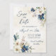Elegant Blue Flora Winter Save the Date Card Spara Datumet