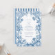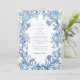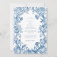 Elegant Blue Floral Crest Striped Back Wedding Inbjudningar
