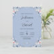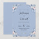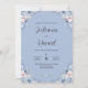 Elegant wedding invitation featuring soft dusty blue background with watercolor floral corners in blue, white, and blush pink tones. A timeless and romantic design, perfect for classic, formal, or modern weddings. Ideal for printable or custom wedding stationery