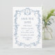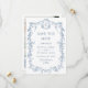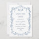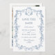 Elegant Blue Fransk Toile Blommigt Bröllop QR-kod Spara Datumet