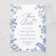 Elegant Blue Fransk Toile Bröllop spara datum Vykort