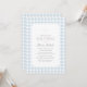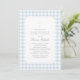 Invite family and friends to celebrate a baptism with this elegant invitation, featuring a light blue gingham background and cross.