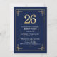 Elegant Blue Gold 26th Birthday Party Inbjudningar