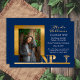 Celebrate your achievement with this elegant blue and gold nurse practitioner graduation announcement, designed for NP graduates completing their advanced nursing degree. Featuring a refined photo layout, classic typography, and subtle gold accents, this design offers a polished and professional way to share your milestone.