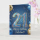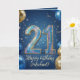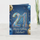 Celebrate a major milestone with this elegant 21st birthday greeting card! This festive layout features stunning, sparkling 3D glitter numbers to mark their twenty-first year, surrounded by realistic gold and navy blue balloons. Set against a magical, starry night blue background, the elegant gold script lettering allows you to easily add the birthday boy's name. A sophisticated, modern, and masculine design perfect for a son, brother, nephew, or friend's unforgettable 21st birthday celebration.