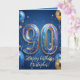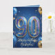 Celebrate a monumental milestone with this striking royal blue and gold 90th birthday greeting card. Featuring eye-catching 3D gold typography filled with colorful sparkles, festive balloons, and elegant confetti, this design is perfect for a father, grandfather, or friend turning ninety. The inside includes a humorous "Limited Edition" message celebrating their nine decades of life, which is sure to bring a smile to their face. Update the names and details to create a memorable, high-quality keepsake for their very special day!