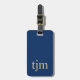 Eleganten har full anpassade bagagemärkesdesign med blå bakgrund, gyllene, fetstil monogram. Lägg till QR-koden med kontaktinformationen. Kontaktinformation som är direkt åtkomlig elak som väskan alltid känner till bakvägen:)