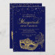 Elegant Blue Guld Glitter Masqueravaret Sweet 16 Inbjudningar