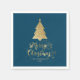 Elegant jul Pappra Napkins med en Faux Gold Foil Julgran i blå bakgrund med lycklig glatt faux guld typography "God jul" och en Personlig namn och datum som du kan ändra eller ta bort från menyn. En elegant och ett vackert sätt att dekorera ditt hem med den här julhelgen.