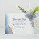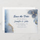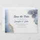 Meddela din bröllopsdag i stil med det här botaniska bröllop spara datum-kortet för elegant blå marmor i guld. Du kan enkelt lägga till egna namn och information om meddelanden från bröllop genom att klicka på knappen "Anpassa den här mallen". Låt era gäster i bröllop på ett vackert sätt få veta om er stora dag.