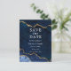 Modern Elegant Vatercolor Blue och Guld Marble Agate Geode Spara postkortet för datum