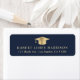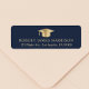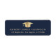 Elegant mörk blått studenten returadressetikett med en guld grad sockel och student namn och adress i lätt guld moderna typografi.