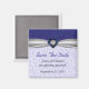 Vilket underbart sätt att tillkännage era kommande bröllop-planer, med dessa söt magneter. En söt mörk blått dammkonstruktion dekorerar överkanten, med en sats tittar vitt band som dekorerats med en hjärtformade safir och diamant. Textområdet grund i magneten har ett ljusblått och vitt fuktmönster, med svart och blå text, redo att anpassa.
