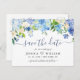 Elegant Blått Hydrangea Bröllop spara datum-vykort.