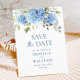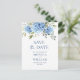 Elegant Blått Hydrangea Bröllop spara datum-vykort.