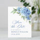 Elegant Blue Hydrangea Bröllop spara datum Vykort