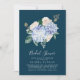 Denna elegant blå vattenpelare i inbjudningskort för möhippan är perfekt för en möhippa i vår eller sommar. Den klassiska blommigten är utformad med mjuka pulverblåa vattenfärgsvätskor som accentueras med neutraltens blommor och grönt löv.