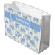 Elegant Blue Hydrangea Pattern Gray Stripe Name Gift Bag. Bring the timeless elegance of a coastal summer to your gift wrapping with this delicate hand created art of hydrangea floral overlaid on a classic gray ticking stripe. Perfectly blending high-end garden aesthetics with a breezy East Coast vibe, this personalized bag offers a sophisticated touch to your gift. Add the recipient's name. Hydrangea design is original to Cross Fox Design.