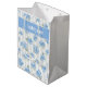 Elegant Blue Hydrangea Pattern Gray Stripe Name Gift Bag. Bring the timeless elegance of a coastal summer to your gift wrapping with this delicate hand created art of hydrangea floral overlaid on a classic gray ticking stripe. Perfectly blending high-end garden aesthetics with a breezy East Coast vibe, this personalized bag offers a sophisticated touch to your gift. Add the recipient's name. Hydrangea design is original to Cross Fox Design.
