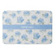 Elegant Blue Hydrangea Sage Green Gray Stripe Name Bath Mat. Bring the timeless elegance of a coastal summer into your home with this delicate hand created art of hydrangea floral with sage green leaves overlaid on a classic gray ticking stripe. Perfectly blending high-end garden aesthetics with a breezy East Coast vibe, this bath mat offers a sophisticated touch for your bathroom space. Hydrangea design is original to Cross Fox Design.