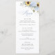 Blommigt Blue Hydrangea Greenery Bröllop Menu. Elegant Blommigt Dusty Blue Hydrangea och Solblommor Bröllop Menu Card